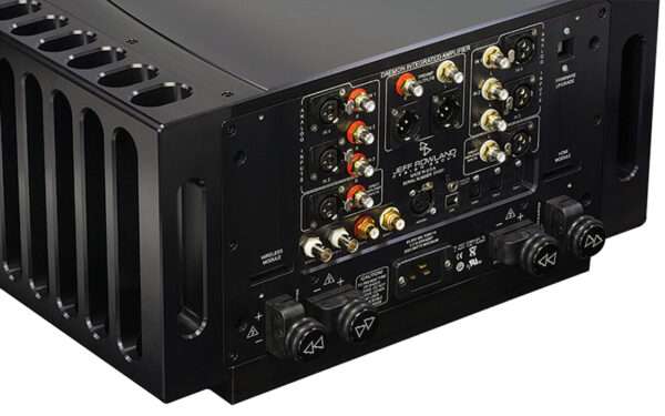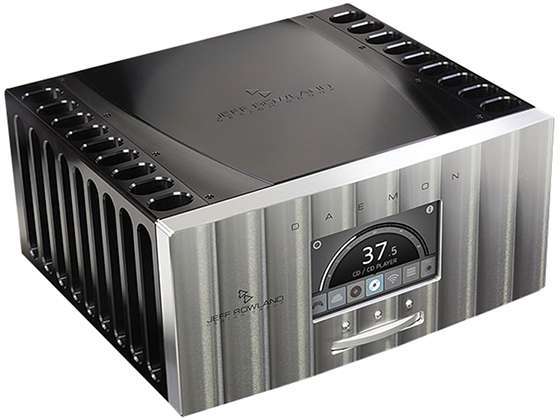 Jeff Rowland Daemon – Amplificatore super integrato stereo con ingressi analogici e digitali. Potenza 2 x 1500W su 8ohm, 2500W su 4ohm. Circuitazione dual mono. Interfaccia touch screen sul frontale. 2 ingressi bilanciati XLR e 3 sbilanciati RCA. 2 ingressi digitali SPDIF e 2 BNC SPDIF. 1 ingresso digitale AES/EBU. 1 Ingresso USB/DSD e 3 ingressi ottici. Uscita pre out bilanciata e sbilanciata. Uscita cuffia con amplificatore dedicato. Volume con encoder ottico. Display con indicazione digitale del volume e della sorgente. Stadi di alimentazione separati per i circuiti digitali e analogici. Connettori per diffusori Cardas. Telecomando Bluetooth. Chassis interamente in alluminio estratto dal pieno. Peso: 45Kg.